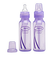 The Dr. Brown's Natural Flow Standard Baby Bottles offer a wonderful feeding experience with innovative vent technology. Dr Brown's bottles use a patented 2-piece internal vent system for your baby's comfort. This system creates positive-pressure flow for vacuum-free feeding that is similar to breastfeeding. The breast milk or formula flows freely without nipple collapse. As the baby feeds, air is channeled from the nipple collar through the vent system to the back of the bottle. Air never mixes with the breast milk or formula so oxidation is prevented, thereby maintaining essential vitamins such as C, A and E. The vent system eliminates air bubbles in the formula or milk, which helps to reduce feeding problems like colic, spit-up, burping and gas. Dr. Brown's bottles are completely BPA, PVC, lead and phthalate free for your baby's safety. Each bottle comes with 1 Level-One silicone nipple, 1 two-piece patented internal vent system, 1 cleaning brush and instructions.