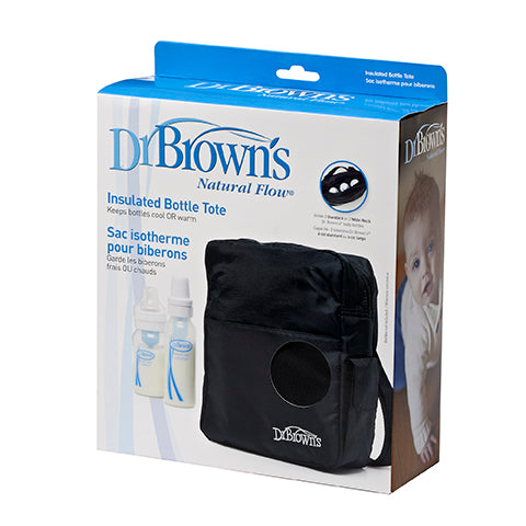 For outings with your baby, bring along Dr. Brown's Insulated Bottle Tote to keep bottles cold or warm. The tote holds three standard or wide-neck Dr. Brown’s baby bottles and includes a freezable gel pack. Its moisture-resistant interior is easy to clean, and its adjustable main strap allows for various carrying positions. The zippered storage pockets and Velcro straps for attachment to a stroller make the tote perfect for travel.